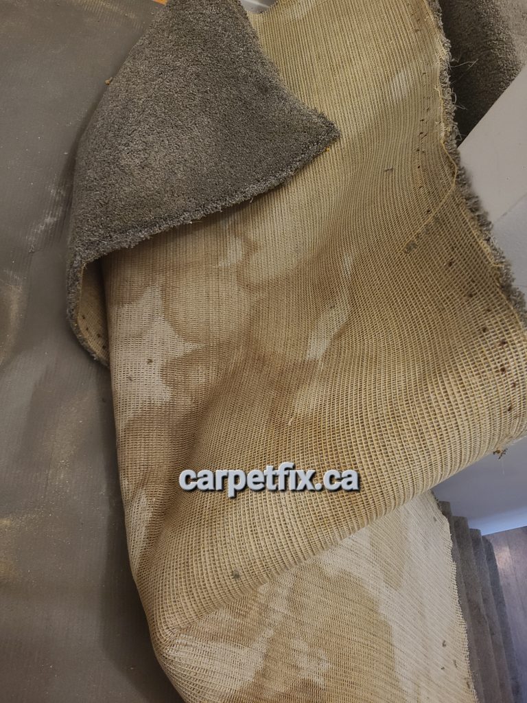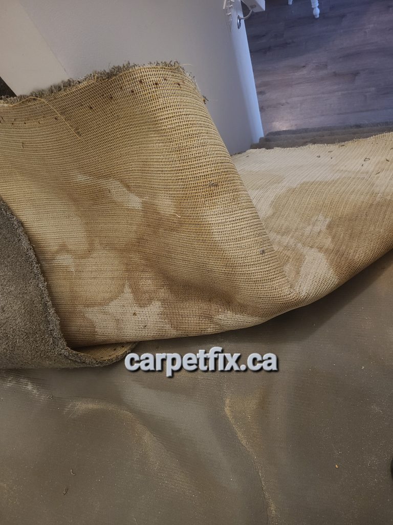 I was called for a bump on the landing. The original issue was carpet wrinkle, but turned out to be a pet urine problem. Carpet was heavily urinated by the pets, and had lost it’s life. This is a no repair zone. Carpet needs to be replaced at this point. It also requires sub-floor to be covered with oil base Killz.